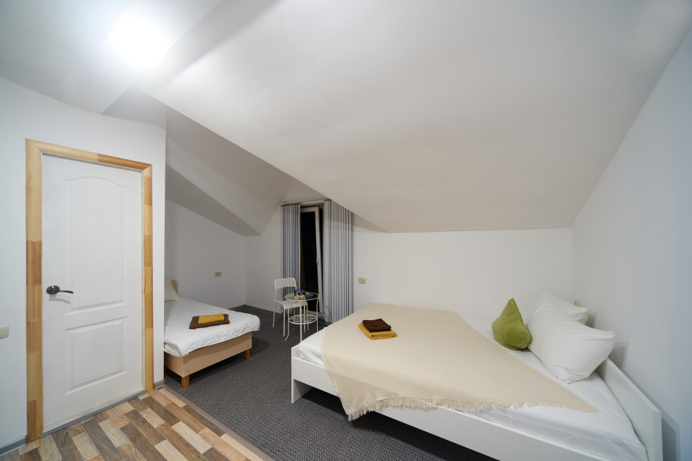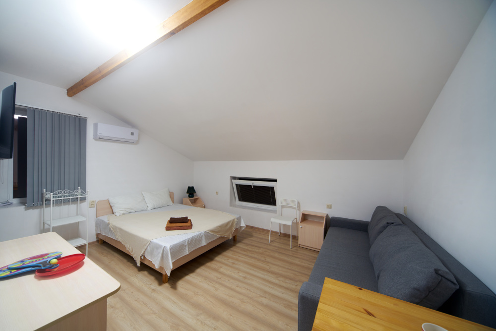 Четырёхместный комфорт с мансардной крышей и видом на море
