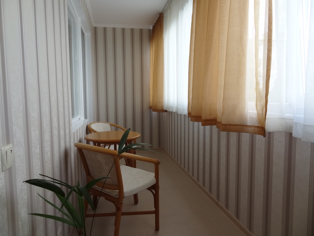 | Вид из окна | Из окон открывается вид зеленый двор,детскую площадку,вдали видно море |